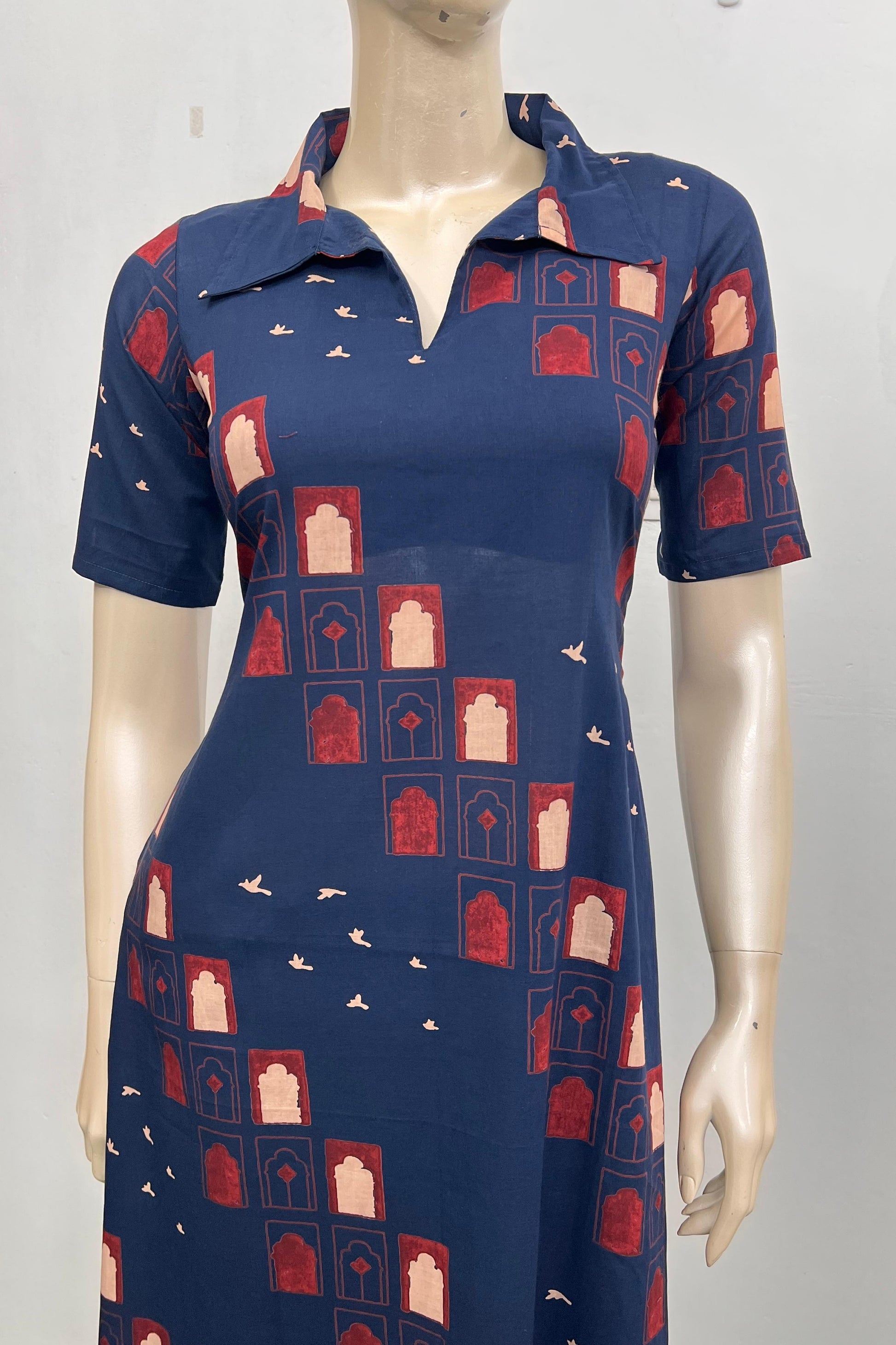 Grace in every detail, from the collared neck to the artistic print. It is made in pure cotton making it breathable and comfortable. The distinctive patterns are created using the hand block printing technique, a centuries old art form where wooden blocks are used to stamp designs on fabric. This artisinal process often results in slight irregularities, which are considered a hallmark of authentic hand block prints.