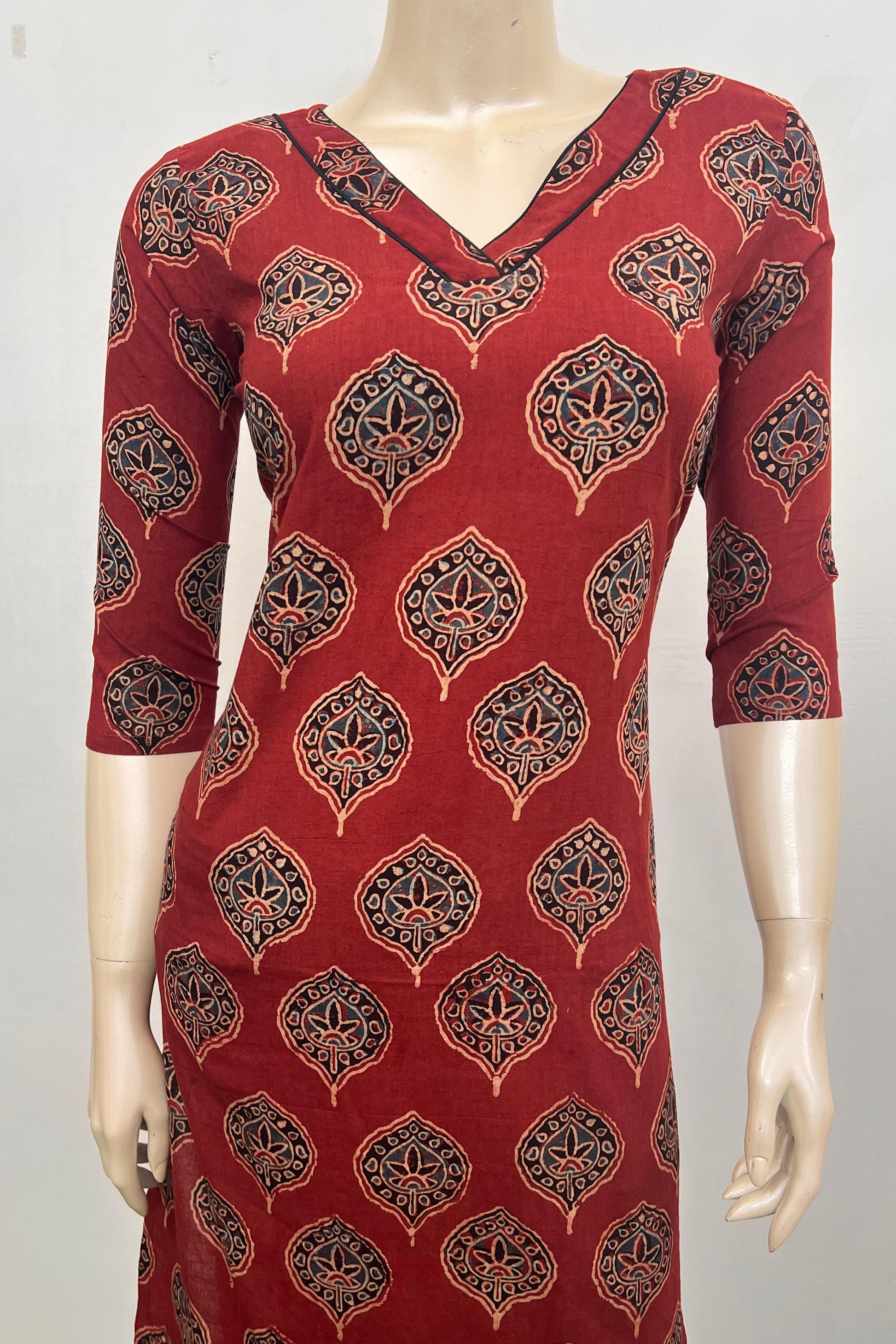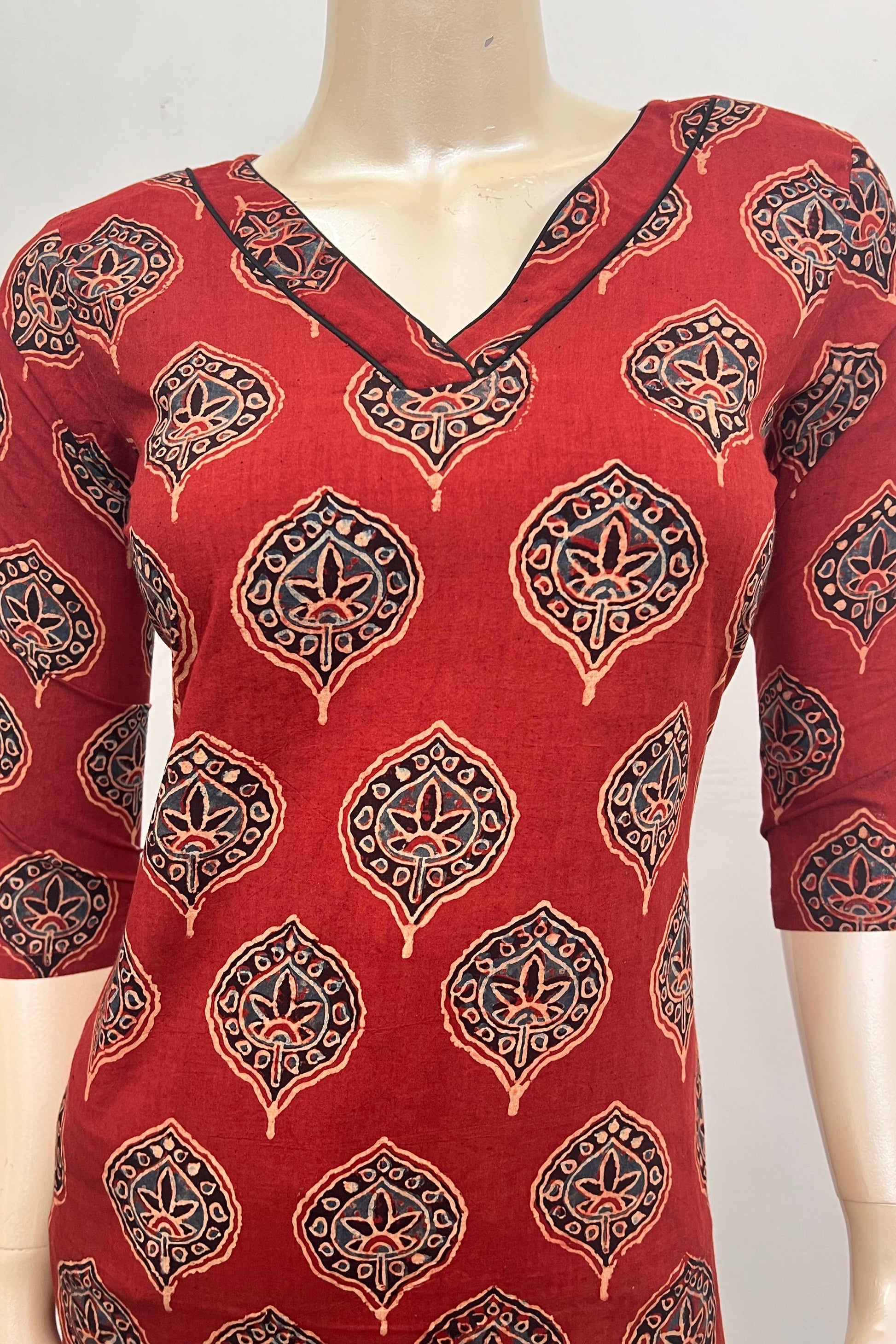 It is made in pure cotton making it breathable and comfortable. The distinctive patterns are created using the hand block printing technique, a centuries old art form where wooden blocks are used to stamp designs on fabric. This artisinal process often results in slight irregularities, which are considered a hallmark of authentic hand block prints.