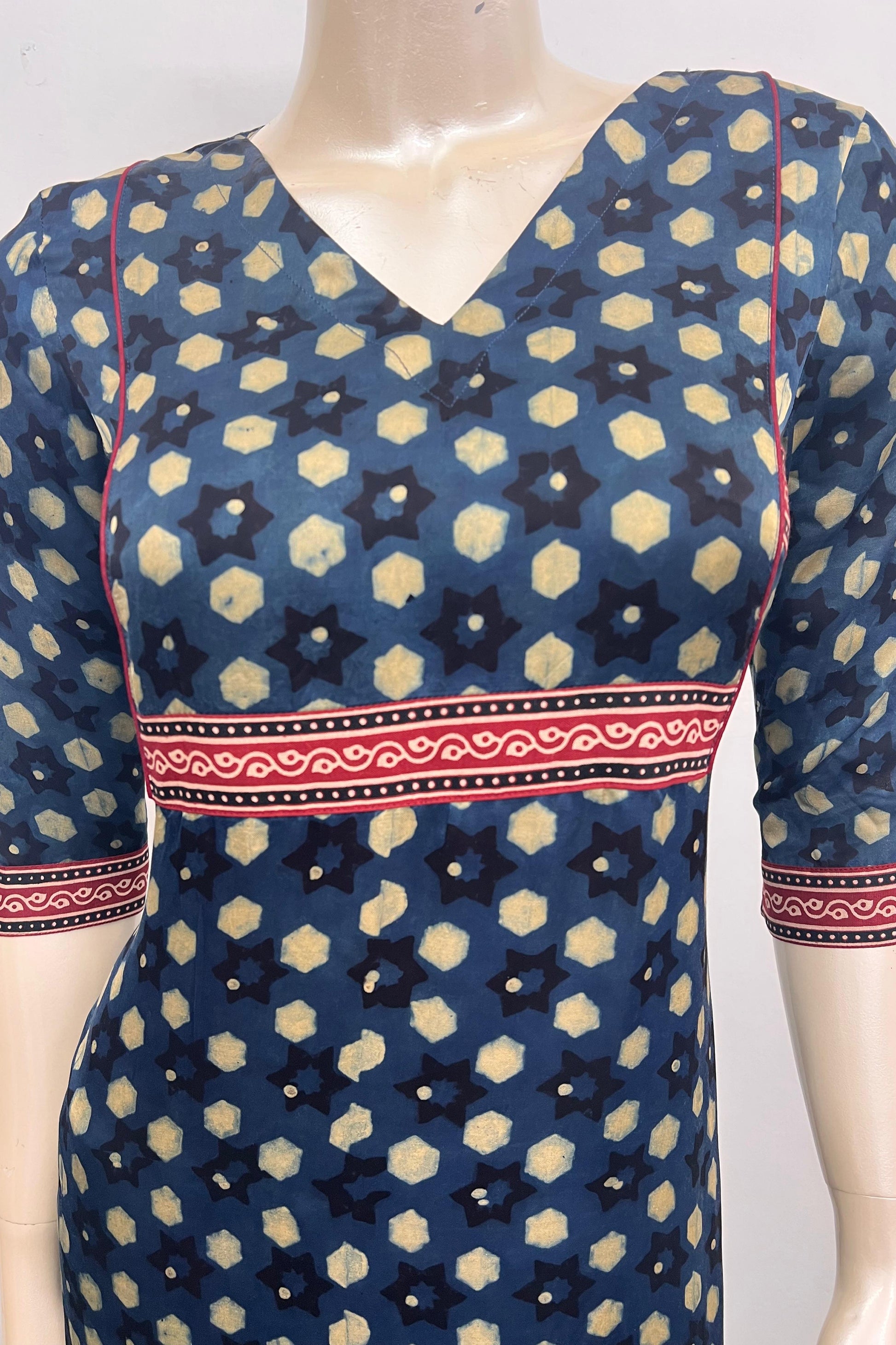 It is made in pure cotton making it breathable and comfortable. The distinctive patterns are created using the hand block printing technique, a centuries old art form where wooden blocks are used to stamp designs on fabric. This artisinal process often results in slight irregularities, which are considered a hallmark of authentic hand block prints.