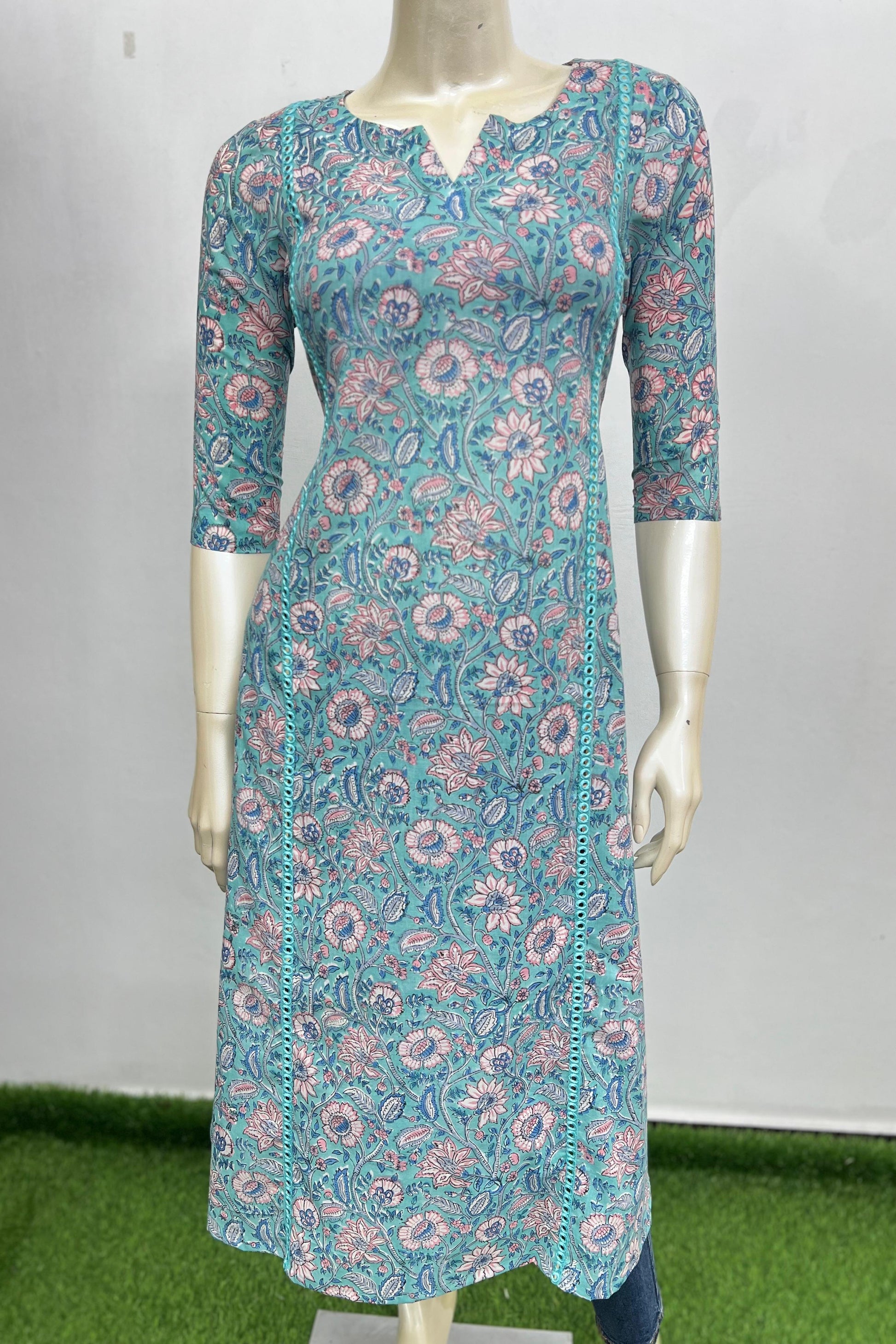 It is made in pure cotton making it breathable and comfortable. The distinctive patterns are created using the hand block printing technique, a centuries old art form where wooden blocks are used to stamp designs on fabric. This artisinal process often results in slight irregularities, which are considered a hallmark of authentic hand block prints.