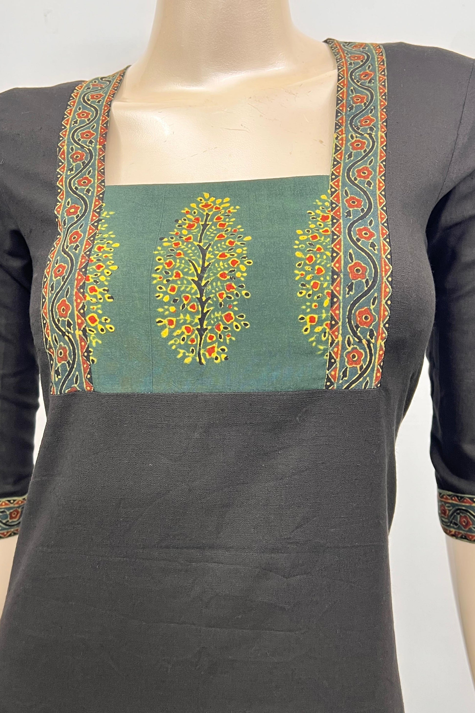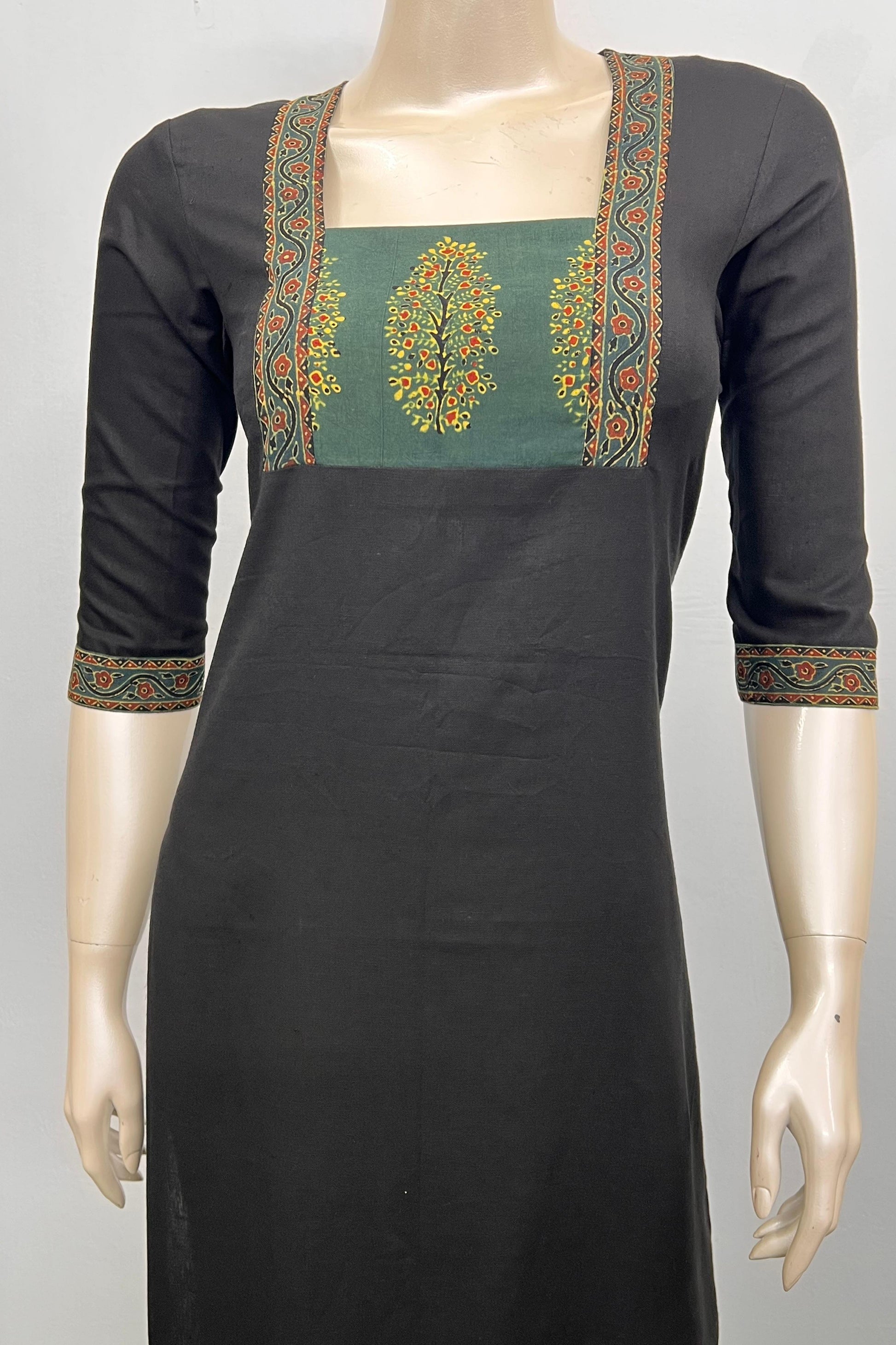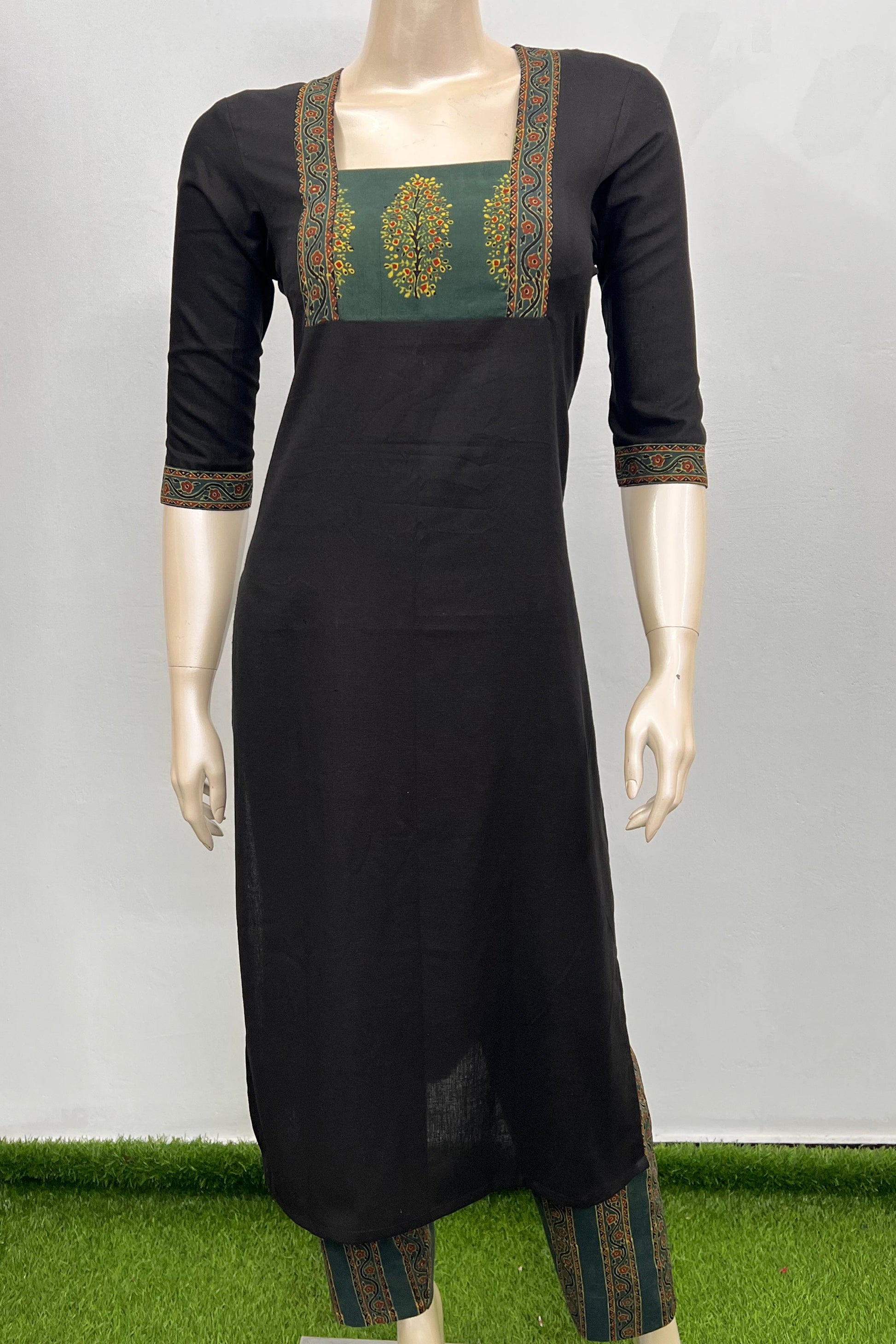 Embrace a masterpiece of tradition and timeless beauty with this stunning black and green co ord set. Crafted in a comfortable, breathable fabric, this piece blends modern grace with cultural charm, perfect for both casual outings and festive gatherings.