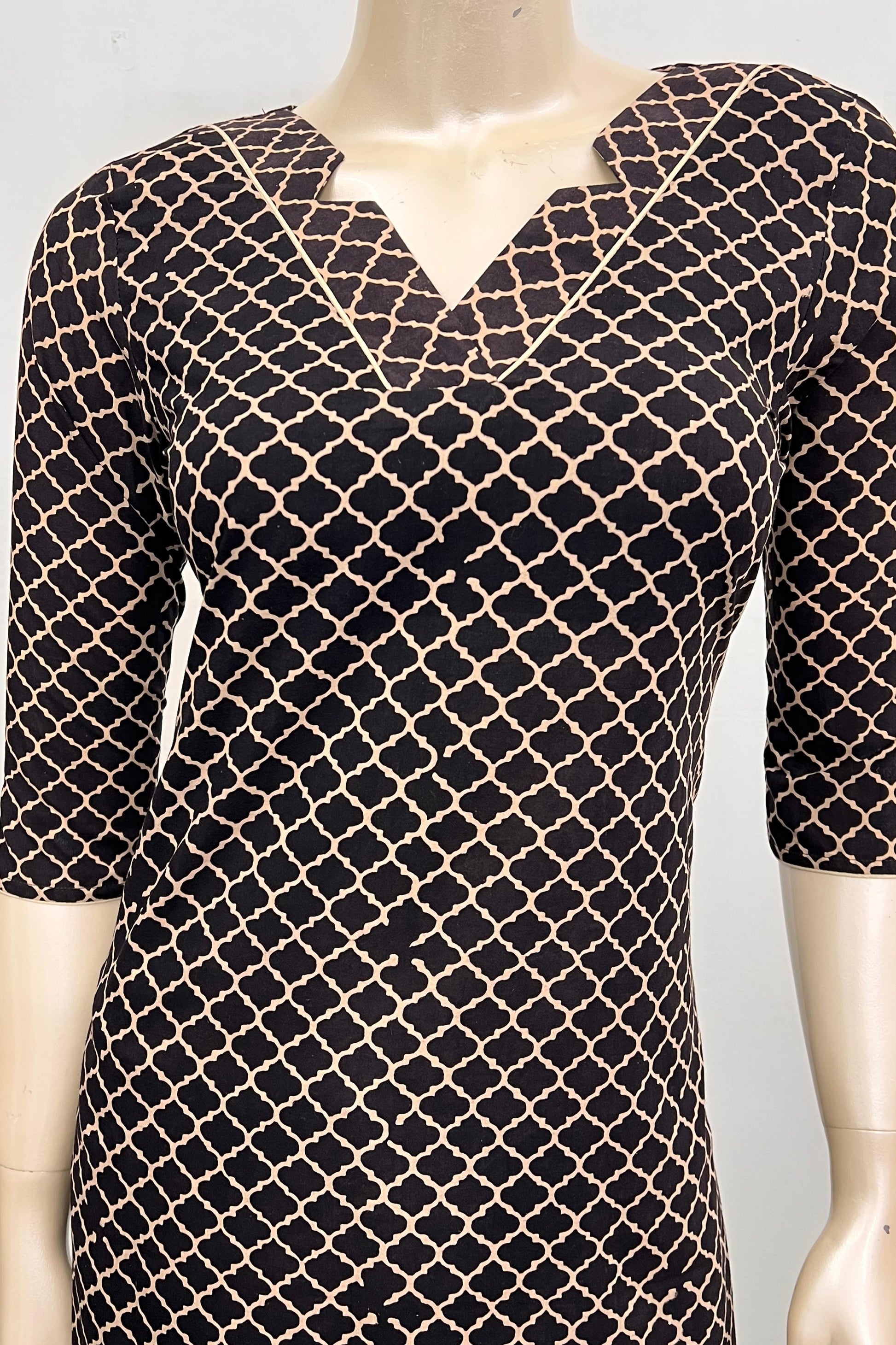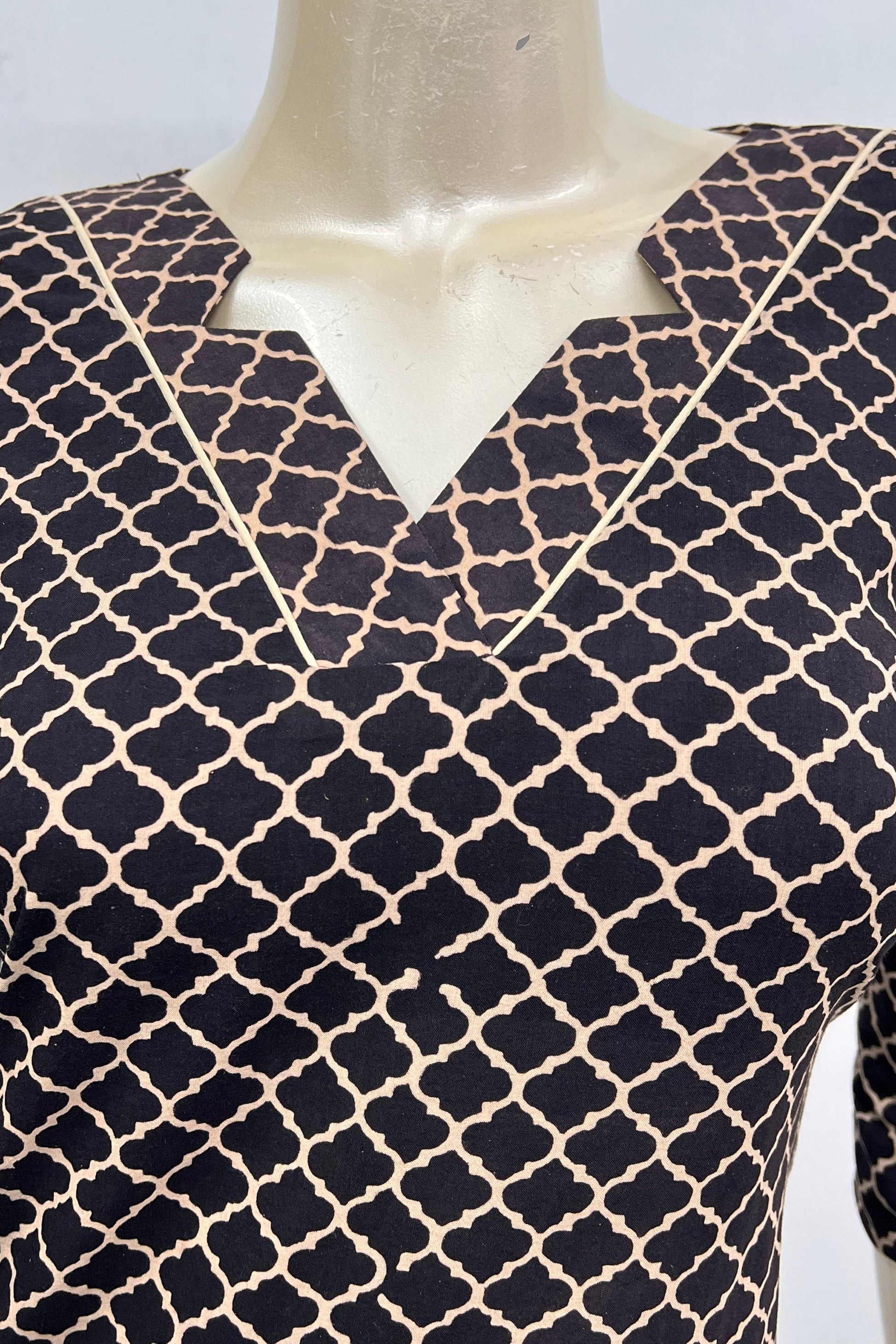 It is made in pure cotton making it breathable and comfortable. The distinctive patterns are created using the hand block printing technique, a centuries old art form where wooden blocks are used to stamp designs on fabric. This artisinal process often results in slight irregularities, which are considered a hallmark of authentic hand block prints.